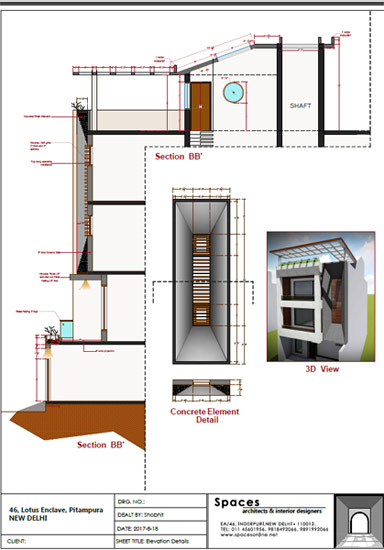 Architectural design consultancy includes detailed drawings giving various design options as per the client's requirement. These include working drawings of the structure, civil work, electrical, plumbing and elevation details. Rendered three dimensional views are provided for better visualisation and understanding.